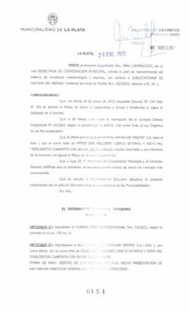 Expte. 4061-1185696-21. Aprueba. Adjudica Compra Directa Excepcional Nº 52 por la que se solicita el plan de mantenimiento del sistema de monitoreo meteorológico y alarmas.
