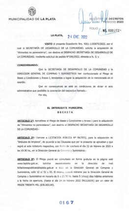 Aprueba Pliego. Llama a Licit. Pública Nº 06-22.