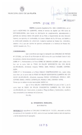 Expte. 4061-1183655-21. Aprueba. Adjudica Concurso de Precios Nº 137-21 por la que se solicita el alquiler de motoniveladora.