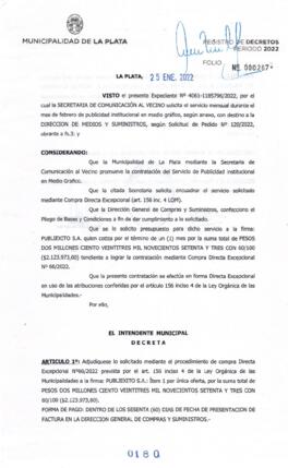 Expte. 4061-1185796-22. Adjudica Compra Directa Excepcional Nº 66 por la que se solicita la contratación del servicio de publicidad institucional en medio gráfico.