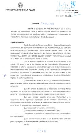 Expediente. 4061 2046679 24. Aprueba procedimiento de Compra Directa Excepcional para el Servicio de mantenimiento del alumbrado público