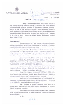 Expte. 4061-1160665-21. Adjudica Compra Directa Excepcional Nº 101-21 por la que se solicita la contratación de recolección de residuos no habituales en City Bell y Villa Elisa.