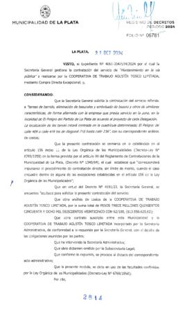 Expediente. 4061 2047514 24. Aprueba procedimiento de Compra Directa Excepcional para el Servicio y mantenimiento en la vía pública