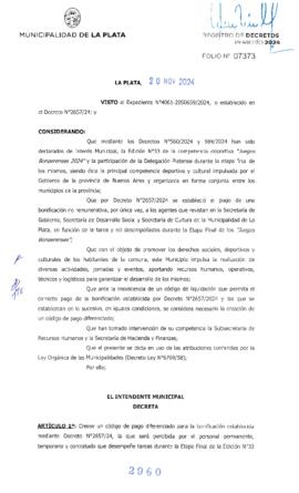 Crea código de pago para la bonificación establecida por Decreto. 2657 24