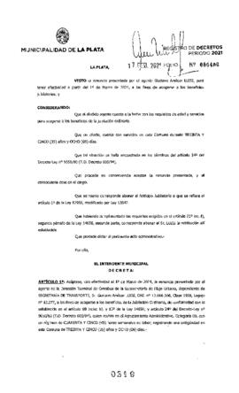 Acepta renuncia a los fines de acogerse a los beneficios de la Jubilación Ordinaria Sr. LUISI.